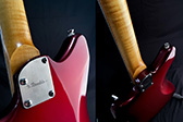 Le manche en érable flammé a des reflets changeants en fonction de la lumière. Il est doté d'une touche en palissandre indien au radius progressif afin de faciliter le jeu dans les aigües.
