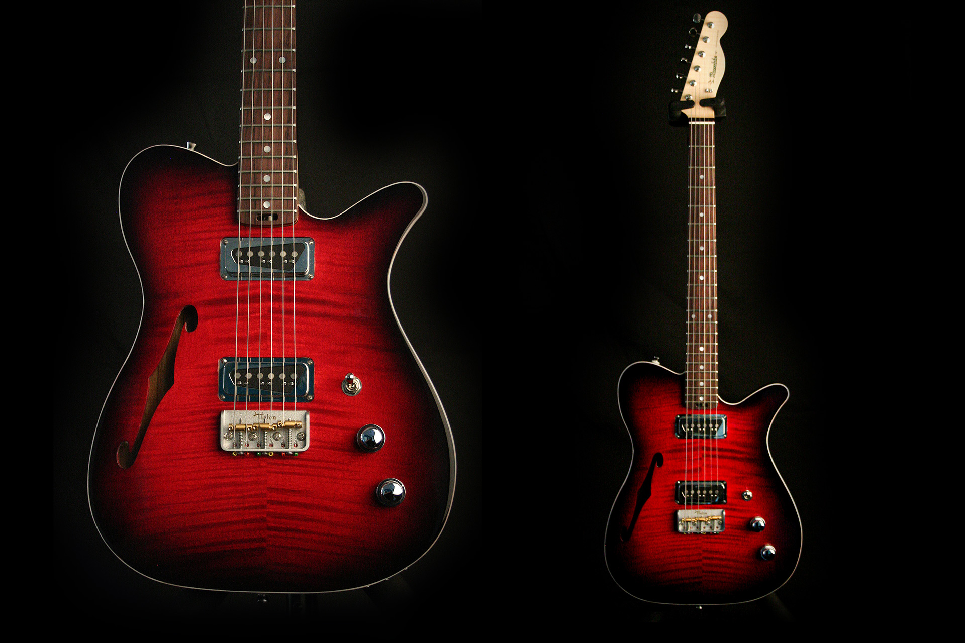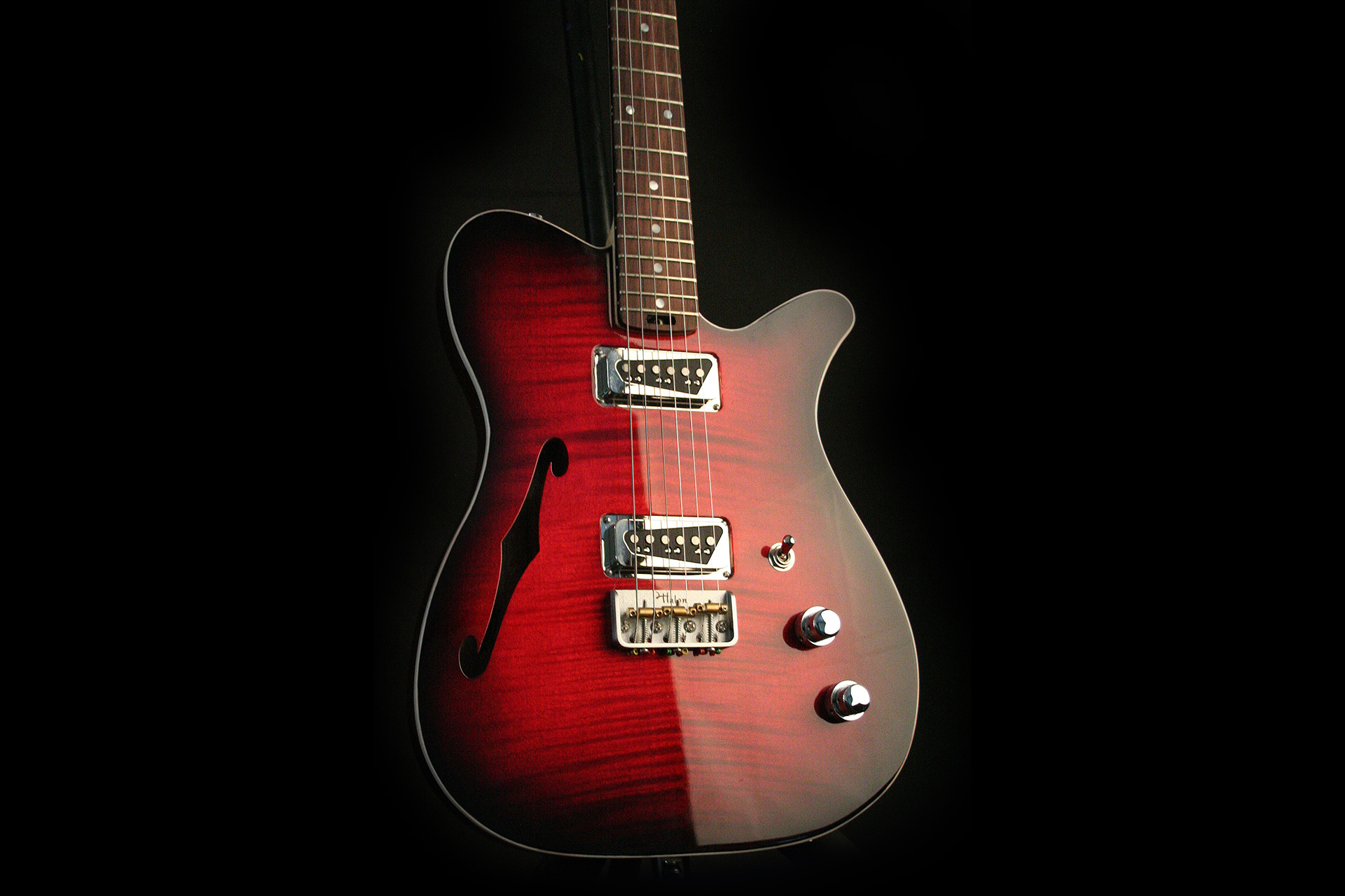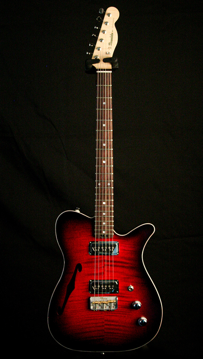 Cette guitare est une commande pour un professeur de guitare au conservatoire. Le cahier des charge était simple : une guitare simple à utiliser, légère et un peu plus résonante qu'une solid body.